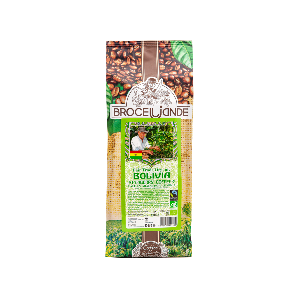Кофе в зернах Brocéliande Bolivia Peaberry Organic Coffee (Броселианд Боливия) - Боливия Peaberry выращивается в провинции Юнгас на границе боливийских Андах, в исключительной и уникальной природной среде. Кофе средней крепости и обжарки. Характеризуется очень мягким утонченным вкусом и легкой приятной горчинкой.