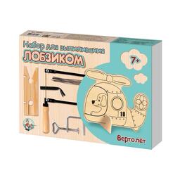 Выпиливание лобзиком развивает у ребенка художественный вкус, аккуратность и усидчивость. В набор входит несложная модель вертолета, которую ребенок сможет выпилить самостоятельно, и подробная инструкция. Перед тем, как начать выпиливать модель вертолета, потренируйтесь на чистой доске. Для этого карандашом нарисуйте линии и геометрические фигуры на дощечке, а затем попросите ребенка выпилить их. После окончания работы над моделью рекомендуется произвести окончательную отделку надфилем или наждачной бумагой (не входят в набор). Набор предназначен для детей от 7 лет. Состав набора: лобзик, ключ, набор пилок (30 штук), струбцина, выпиловочный столик, фанерка (2 штуки, 1 с рисунком, 1 чистая), размер доски – 21х15 см, инструкция.