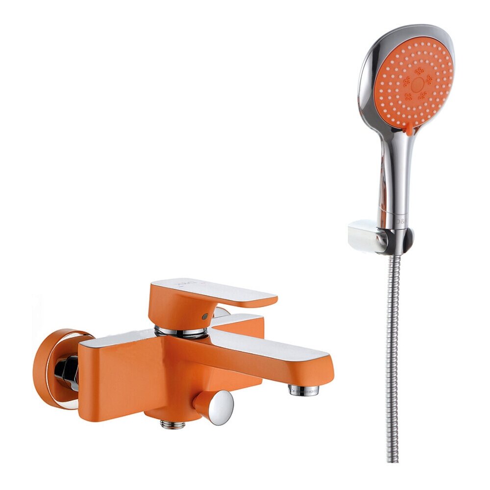 для ванны с душем Длина излива: 21 см подводка 1/2" оранжевый, хром латунь рычажное управление керамический картридж Душевой гарнитур: в комплекте Излив: фиксированный