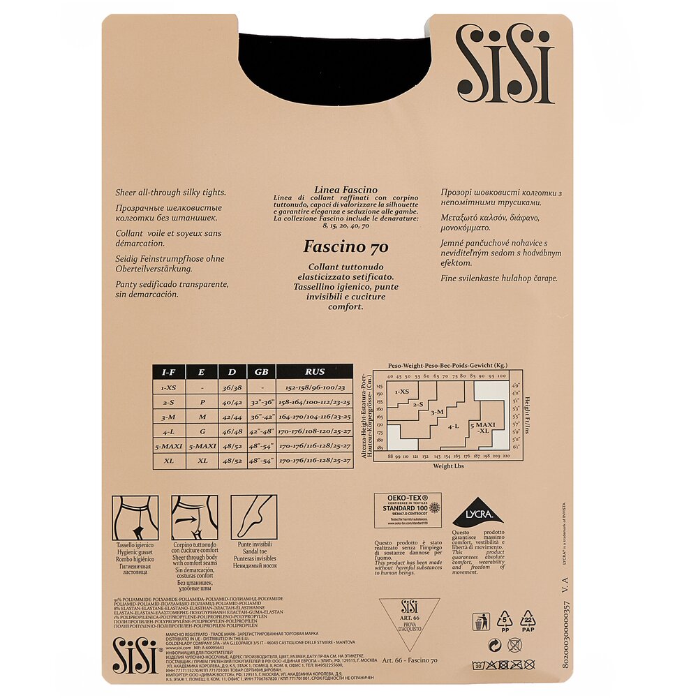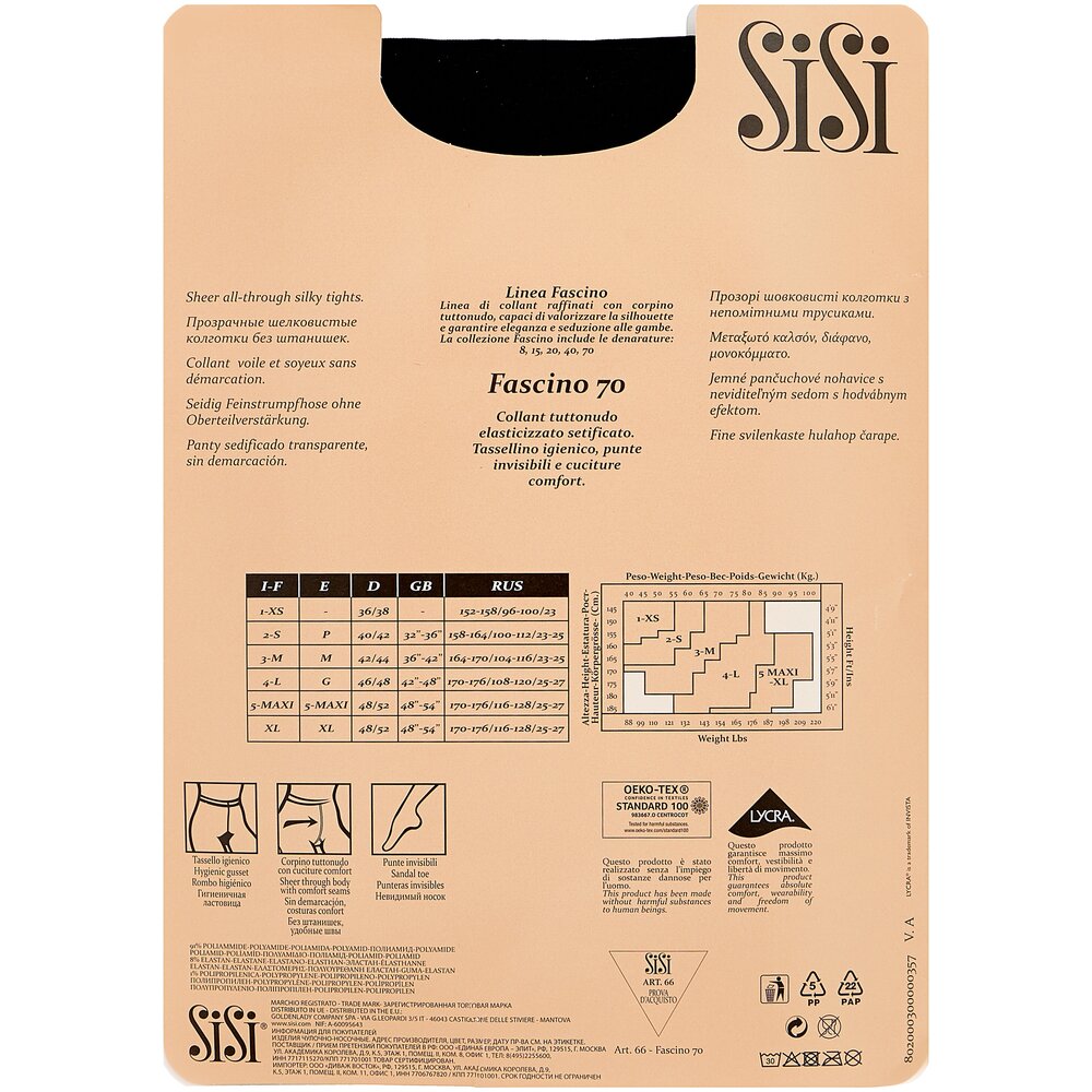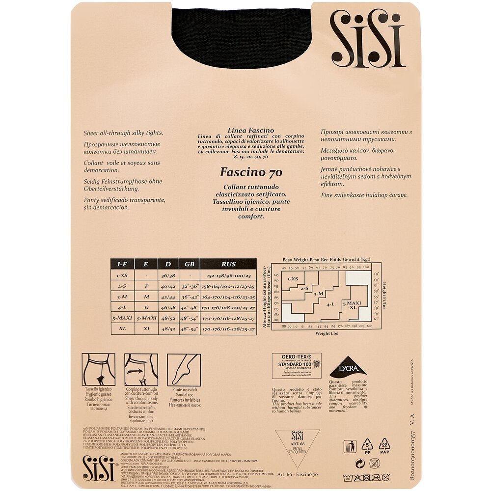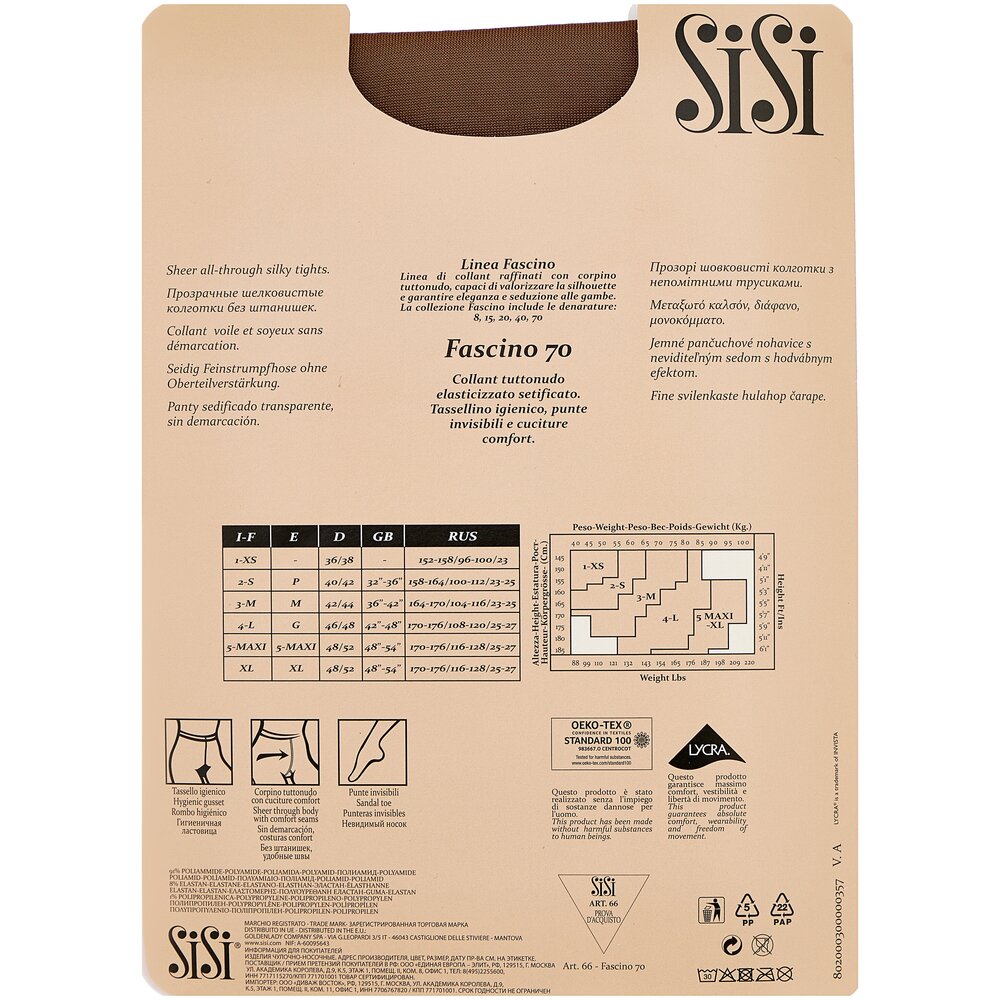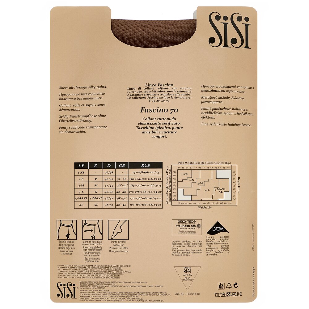 Колготки Sisi Fascino, 70 den, размер 2-S, daino (коричневый)