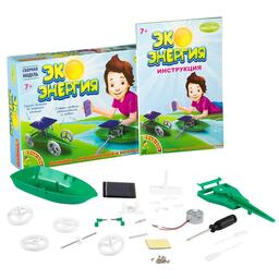 - Комплектация шурупы с потайной головкой 11 штук, отвертка, шурупы с полукруглой головкой 2 штуки, корпус автомобиля, корпус судна, восьмерки 2 штуки, переднее колесо 2 штуки, заднее колесо 2 штуки, неподвижный блок 2 штуки, кронштейн двигателя, элемент привода заднего хода, весло 2 штуки, недгедс, двигатель, зубчатый блок, солнечная батарея, крепеж, ось переднего колеса, инструкция
