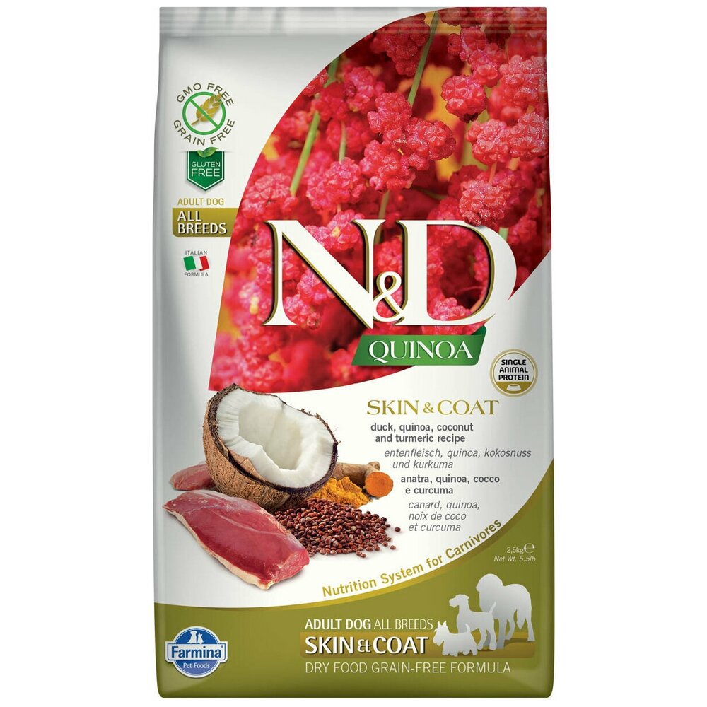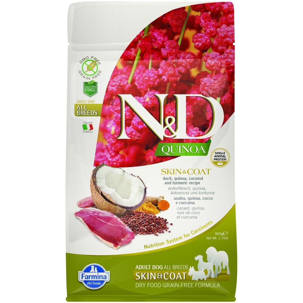 - Состав свежее мясо утки без костей (18%), дегидратированное мясо утки (18%), гороховый крахмал, рыбий жир, экстракт семян киноа (8%), льняное семя, сушеный кокос (2,5%), куркума (2,5%), инулин, фруктоолигосахариды, маннанолигосахариды (дрожжевой экстракт), карбонат кальция, дикальций фосфат, подорожник, калия хлорид, натрия хлорид, сухие пивные дрожжи, глюкозамин, хондроитин сульфат, экстракт календулы