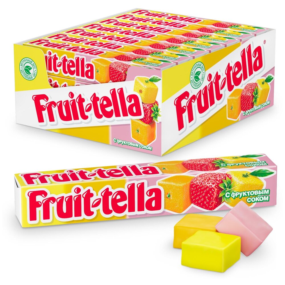 Любители фруктов вдохновили Fruittella на создание вкуснейших жевательных конфет с добавлением фруктового сока, приготовленных из натуральных ингредиентов. Сочный вкус фруктов и ягод круглый год! Жевательная конфета Fruittella Ассорти объединяет в себе любимые вкусы апельсина, лимона и клубники в сочетании с натуральным фруктовым соком. Наслаждайтесь идеальным фруктовым вкусом круглый год!.