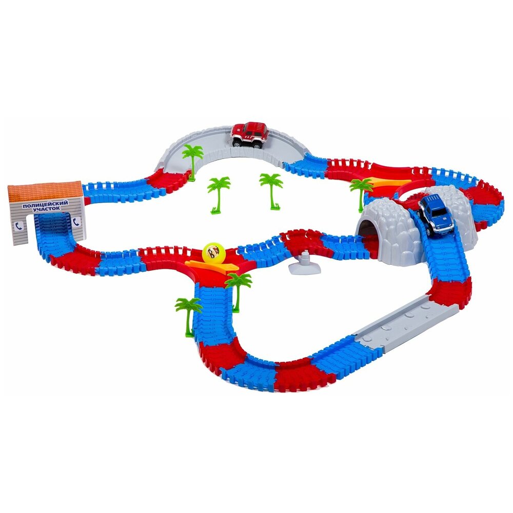 - Комплектация - детали для сборки дамбы 6 шт.;<br/> - тоннель 1 шт.;<br/> - деревья 6 шт.;<br/> - стрелка-перевод 2 шт.;<br/> - шар 1 шт.;<br/> - детали для сборки дороги 175 шт.;<br/> - набор наклеек;<br/> - полицейский участок 1 шт.;<br/> - машинки 2 шт.