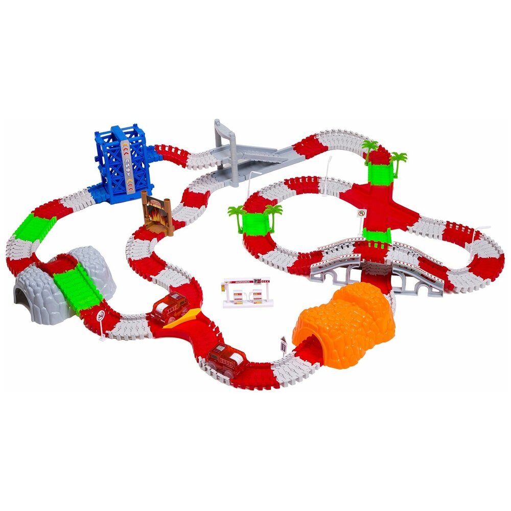 - Комплектация - лифт 1 шт.;<br/> - детали для сборки дамбы 8 шт.;<br/> - детали для сборки дороги 295 шт.;<br/> - шар 1 шт.;<br/> - запасные шины 4 шт.;<br/> - деревья 4 шт.;<br/> - детали для сборки моста 10 шт.;<br/> - дорожные знаки 7 шт.;<br/> - тоннель 2 шт.;<br/> - ворота 1 шт.;<br/> - наборы наклеек 4 шт.;<br/> - стрелка-перевод 1 шт.;<br/> - светящиеся машинки 2 шт.