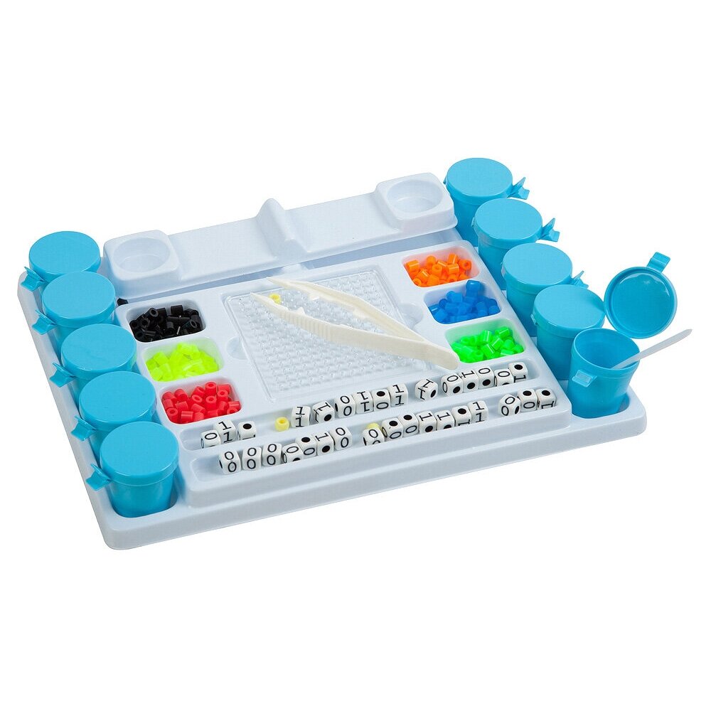 - Комплектация сортировочный лоток, цифровые бусины, шнурок для ожерелья весы-качели, пластиковые листы с лабиринтами (3 шт.), пиксельная доска, цветные бусины, 10 пластиковых контейнеров, пинцет, ложка, 2 бумажные полоски, пластиковая трубка, песок, 12 наклеек, инструкция