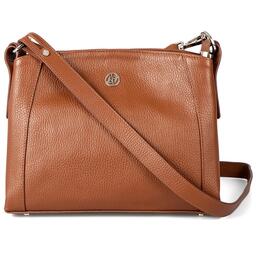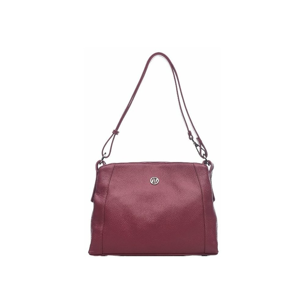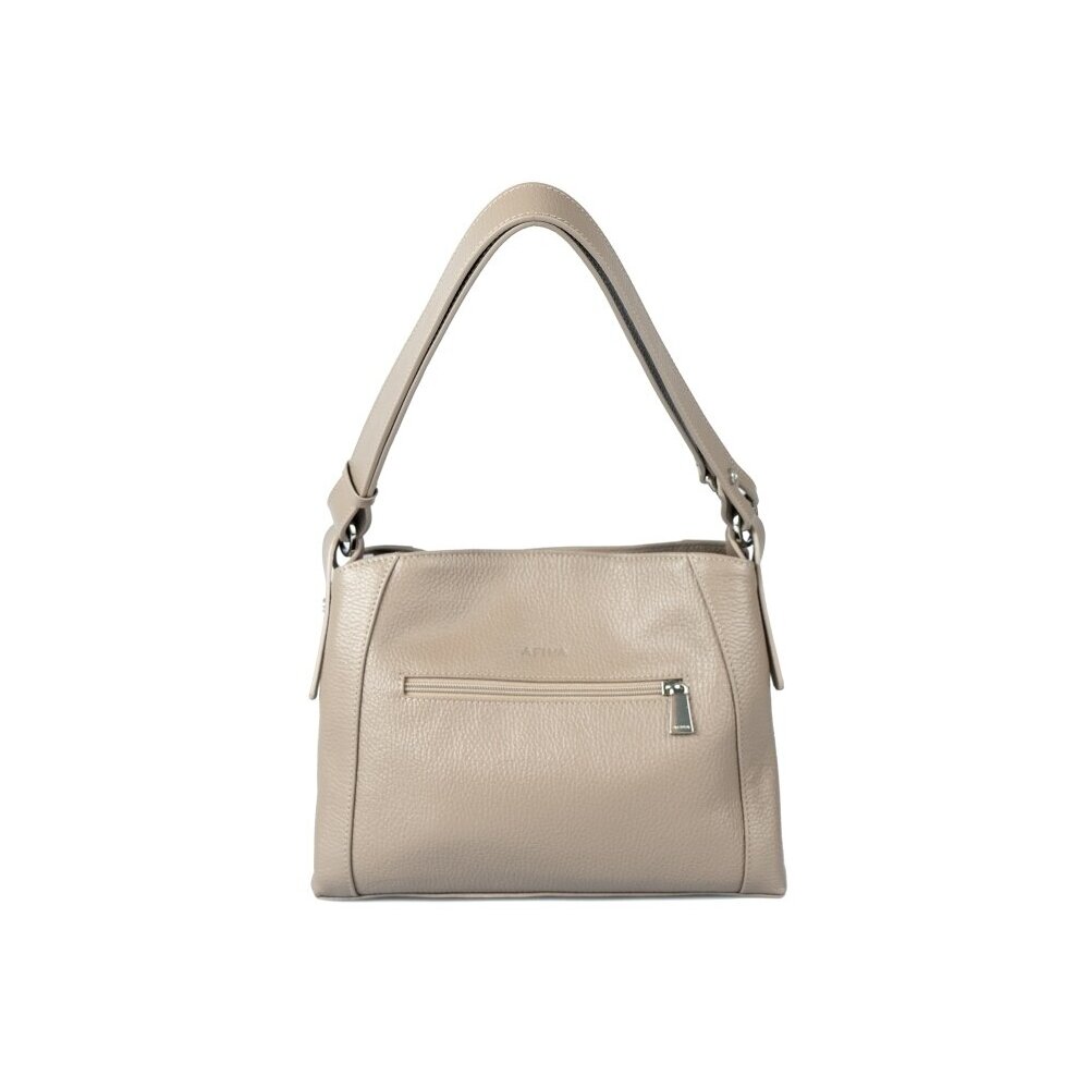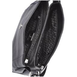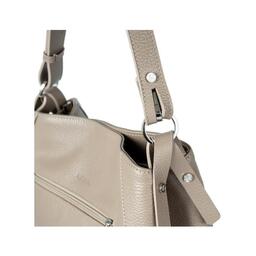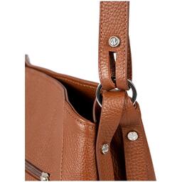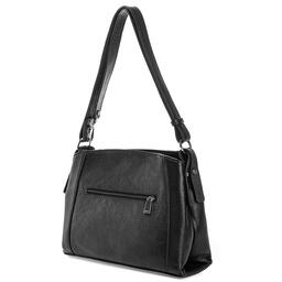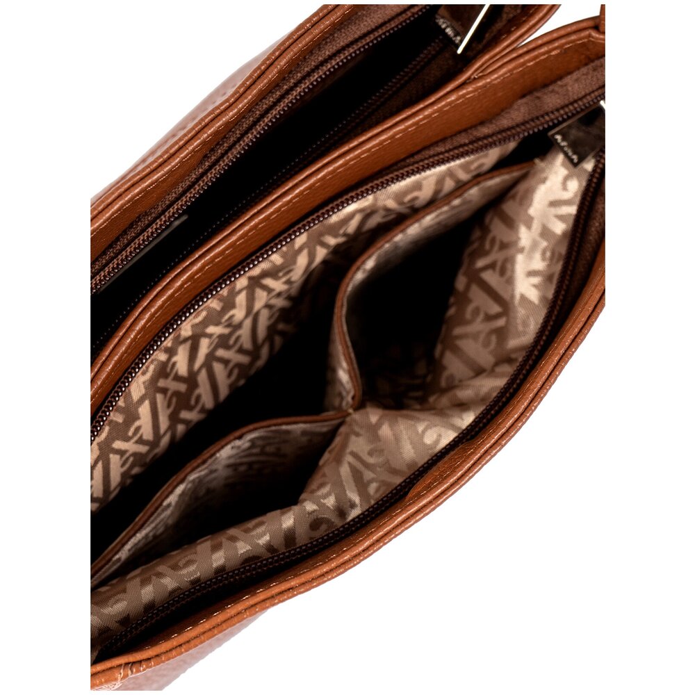 Каркас мягкий. Два отделения закрываются на застёжку-молнию и магнитную кнопку. На передней стенке предусмотрено фирменное металлическое украшение. Способ носки: в руке, на плечо, через плечо. Регулируемый несъёмный ремень 110, который перестёгивается в короткую ручку. На задней стенке карман закрывается на молнию. Внутри карман на молнии, карман для телефона и мелочей.