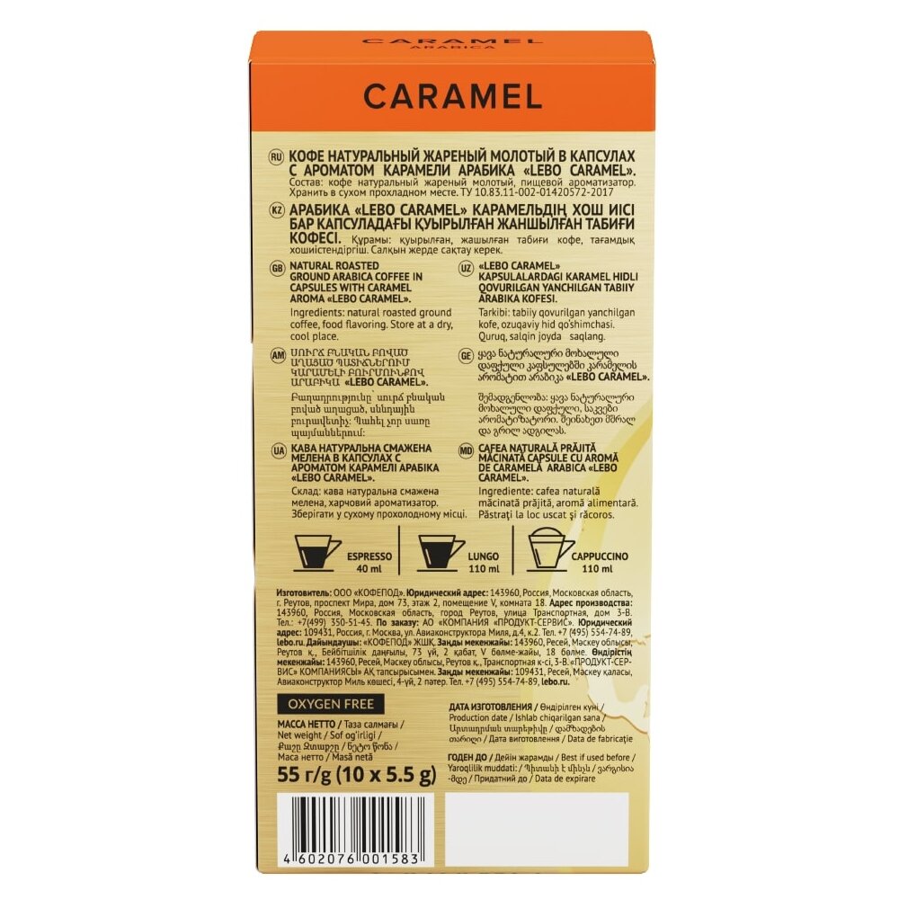 Кофе в капсулах Lebo Caramel, 10 капс.