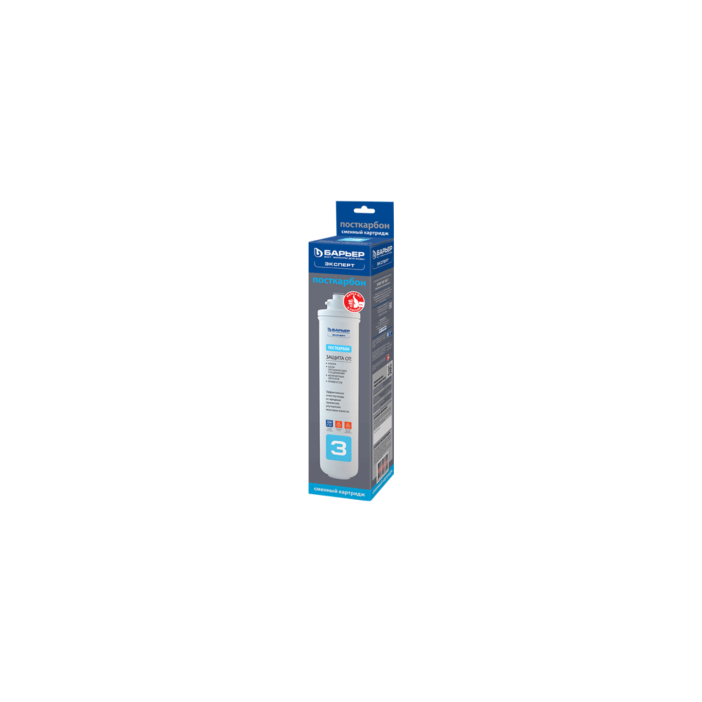 БАРЬЕР ЭКСПЕРТ ПостКарбон - картридж тонкой угольной фильтрации. Устраняет неприятные привкусы, запахи, остаточный хлор. Совместим со всеми фильтрами семейства БАРЬЕР ЭКСПЕРТ. Используется в качестве третьей ступени. Картридж заменяется удобно, одним движением, без специальных инструментов. Технология Smart lock обеспечивает защиту от протечек. Ресурс - 10 000 л. Производительность 2 л/мин. Рабочее давление - 0,5–7,0 атм.
