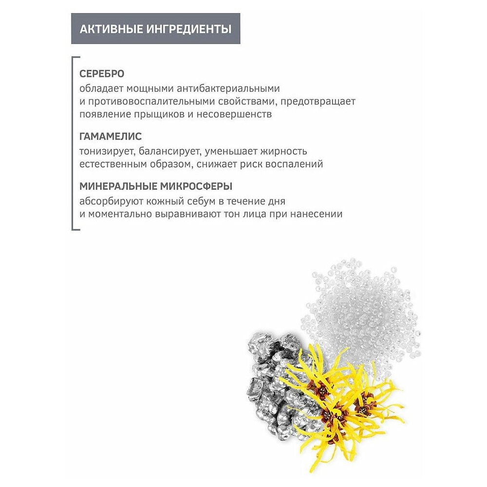 Флюид Zeitun Premium NIQA с серебром, гамамелисом и матирующими минеральными микросферами, созданный на базе цветочных вод, мгновенно придаёт чувство комфорта, устраняет жирный блеск и обеспечивает коже полноценный уход и увлажнение. Ионы серебра и гамамелис препятствуют появлению несовершенств, прыщиков и воспалений. Инновационные минеральные микросферы эффективно абсорбируют кожный себум в течение дня и моментально выравнивают тон лица. Лёгкая формула не содержит масел и силиконов, не забивает поры и не сушит кожу.