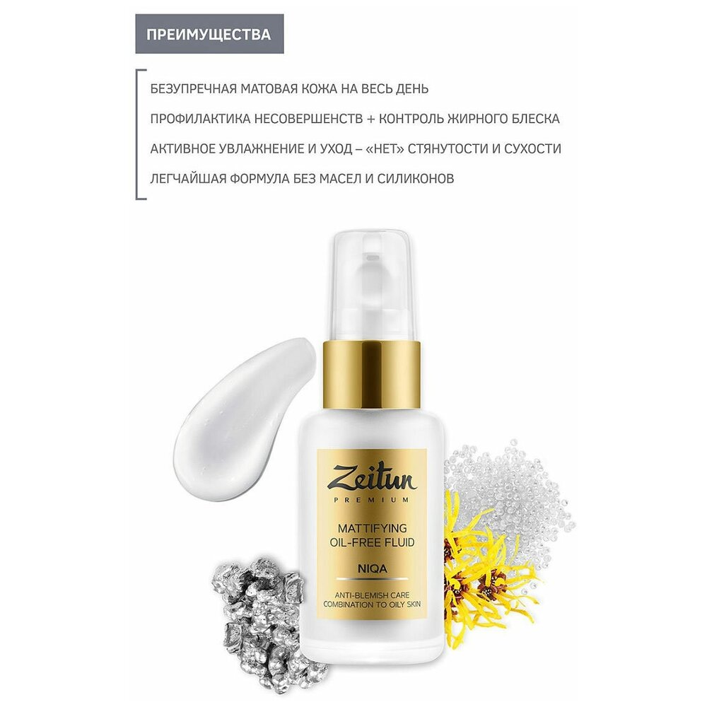 Zeitun Premium NIQA Mattifying Oil-Free Fluid Флюид дневной матирующий без масел для комбинированной и жирной кожи лица, 50 мл