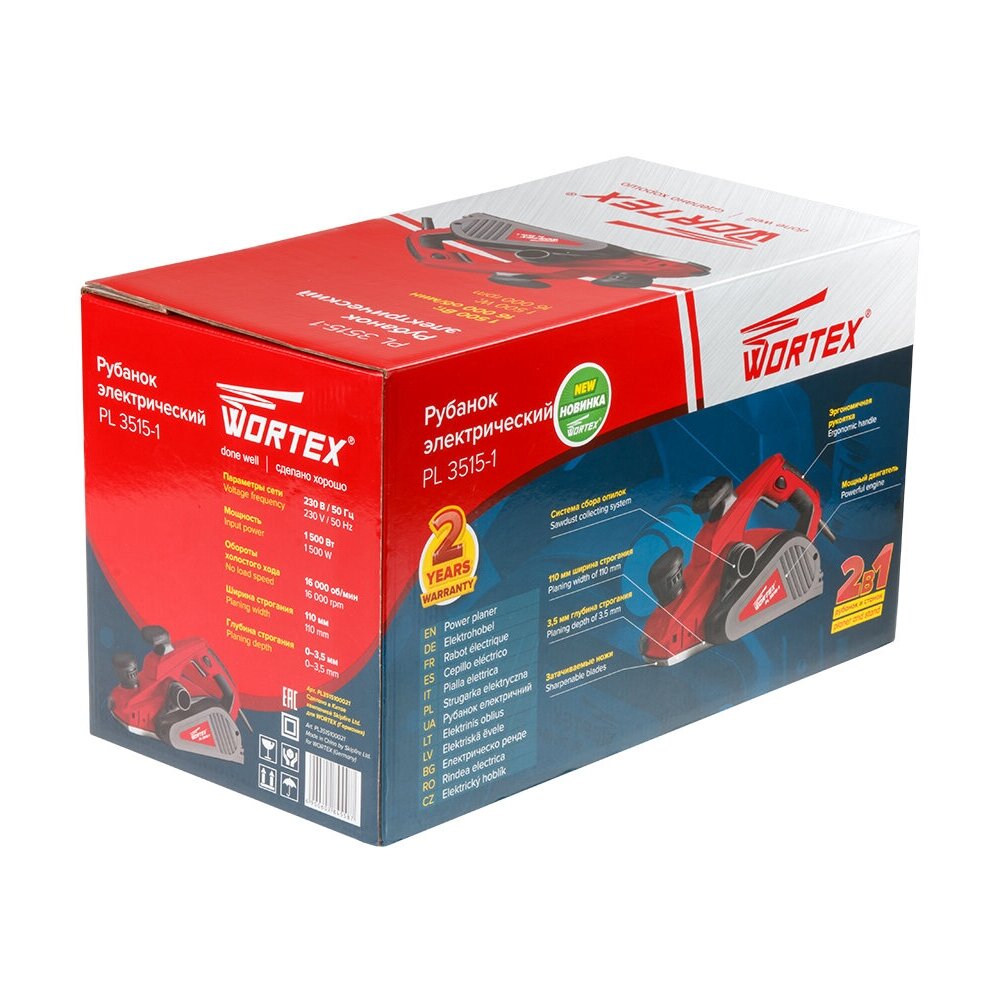 Сетевой электрорубанок Wortex PL 3515-1, со стационарным креплением, 1500 Вт красный/черный