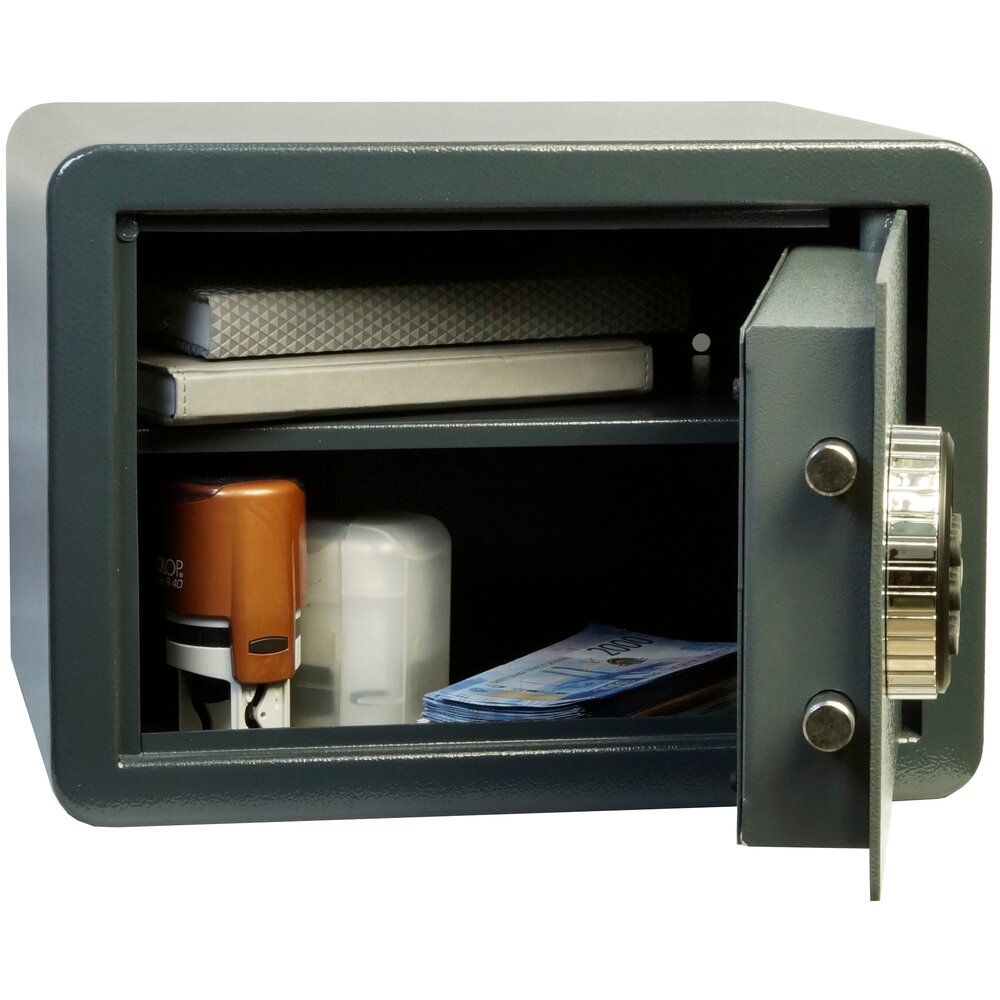 Уникальные сейфы в новом дизайне и современном стиле для дома и офиса с закругленными краями станут украшением любого пространства и гармонично впишутся в интерьер вашего помещения. Обеспечивает начальный уровень защиты от взлома и 100% контроль доступа к содержимому сейфа · Толщина лицевой панели – 4 мм. · Толщина корпуса – 1,8 мм. · Сейф оборудован ключевым (серия K) или электронным замком с дополнительным аварийным ключом (серия EL). Внутри сейфа находится съемная полочка · На поверхность сейфа нанесено двухцветное полимерное покрытие двух оттенков серого цвета. · Рекомендуется крепить сейф к полу или стене, для чего в дне и задней стенке имеются отверстия для анкерного крепления (под анкерные болты диаметром 8 мм).