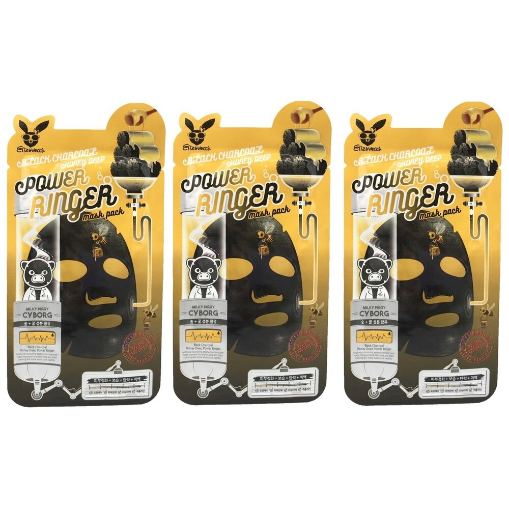 Elizavecca Тканевая маска с древесным углем и медом Black Charcoal Honey Deep Power Ringer Mask, 23 мл
