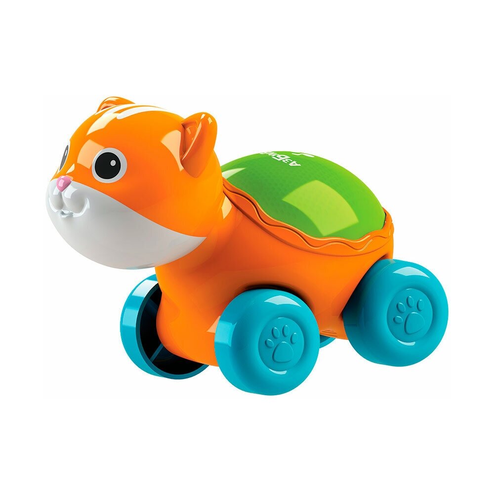 Этого милого котика не просто так зовут Светяшкой! Он весь светится разноцветными огоньками – малышу нужно только нажать ладошкой на спинку игрушки. Котик Светяшка – музыкальный: он поет 6 веселых песенок и мелодий («Песенка про ферму», «Стало солнышко теплей», «Топ-топ, топотушки», «Веселая карусель» «Немецкая полька», «Чижик-пыжик»). А еще у котика есть колесики, и ребенок сможет покатать его.