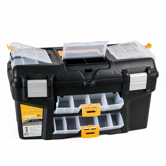 Ящик для инструментов 21`Гефест», с двумя консолями и коробками, цвет черный