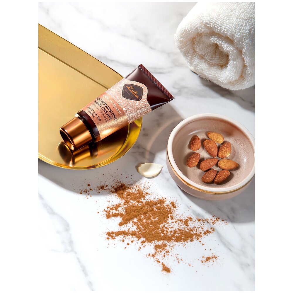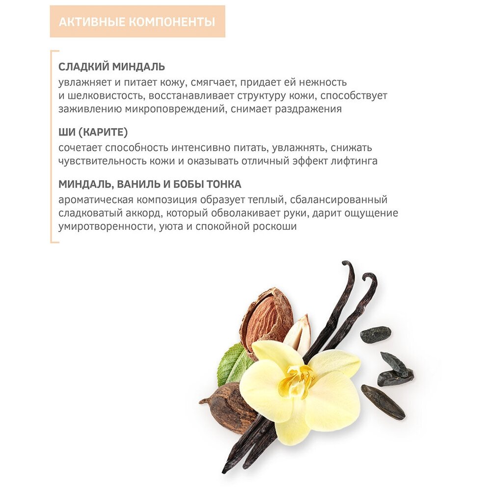 Подарите себе самые сладостные арома-ассоциации, а вашим рукам — желанное наслаждение от ультрапитательного ухода с великолепным ритуалом для красоты рук от Zeitun Wellness. Бережно обрамлённая высокоэкологичными современными технологиями натуральная формула крема содержит высокопитательные масла ши и сладкого миндаля, которые глубоко питают и смягчают сухую кожу, устраняют ощущение стянутости и шелушение, а также нейтрализуют воздействие жёсткой водопроводной воды. Восхитительный аромат сладкого миндаля, ванили и бобов тонка дарит самые приятные ощущения от ежедневной ароматерапии.
