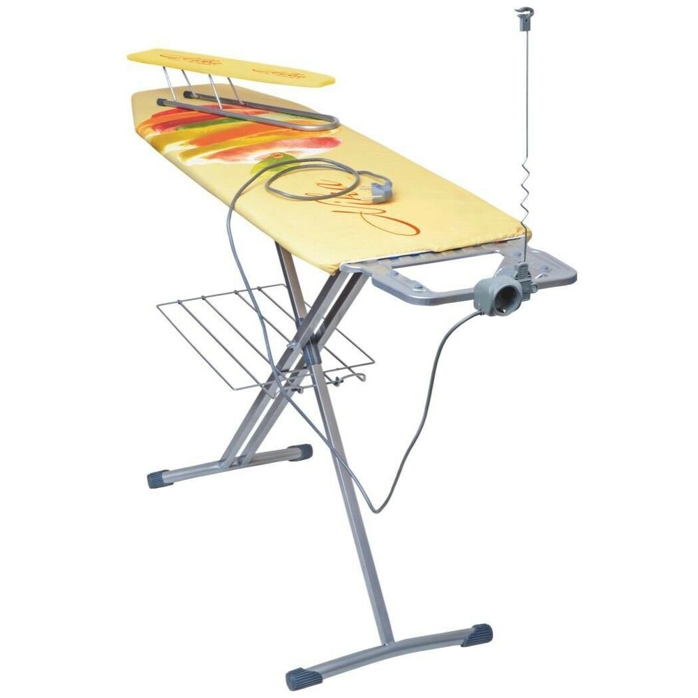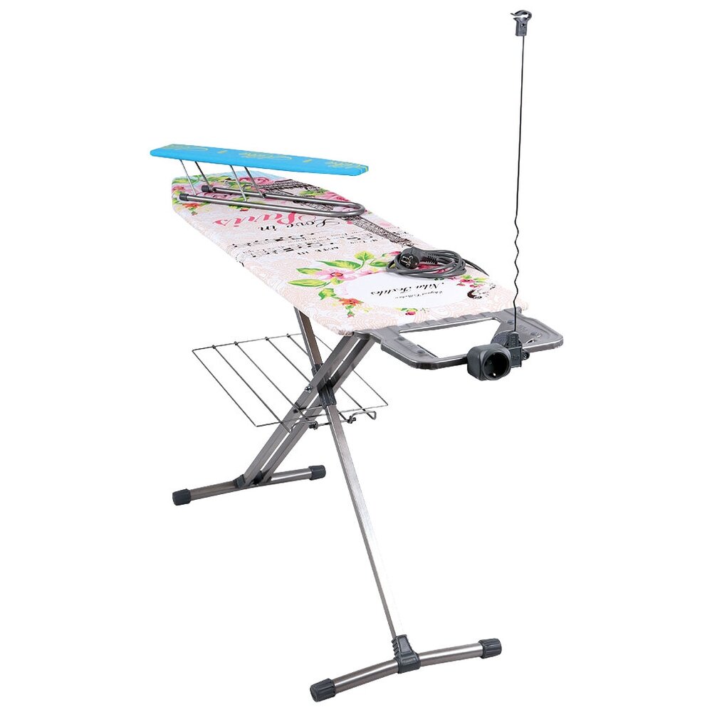 • Комплектация подставка для утюга, гладильный рукав, встроенная розетка для утюга, полка для белья, кронштейн для провода
