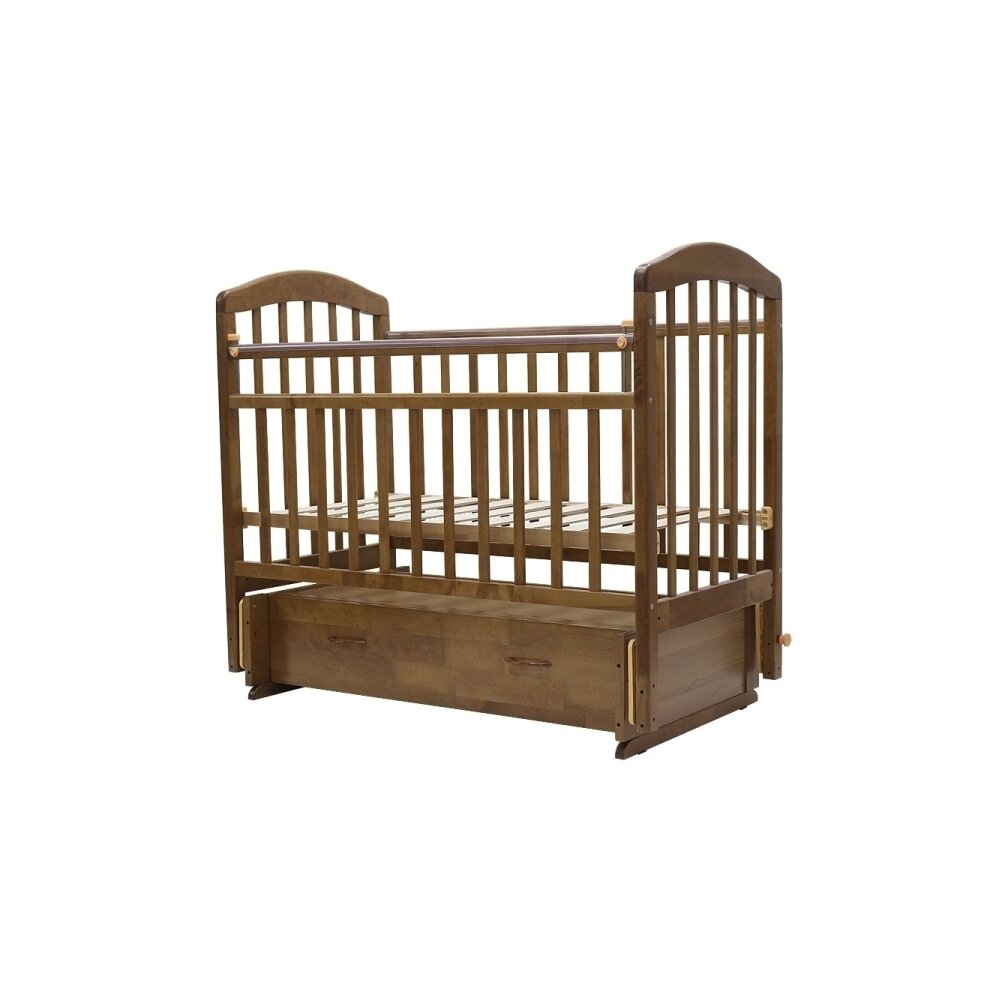 Кроватка с ящиком Топотушки Лира 7 универсальный маятник<br /> Изящный дизайн, плавные линии, умеренная цена и высокое качество обработки дерева- вот главное преимущество этой модели! Для удобства наклона к малышу, верхняя планка переднего ограждения опускается нажатием кнопки. Ортопедические свойства ложа обеспечивают гнутые рейки "латофлекс". Для защиты зубок ребенка и поверхности ограждения, на верхние планки кроватки крепятся специальные накладки "грызунки". Пластиковая маятниковая опора подшипникового типа выдерживает нагрузку до 291 кг, а также обеспечивает плавность качания. Универсальный маятниковый механизм 2 в 1 с возможностью продольного и поперечного качания. Вкручивающийся стопор маятникого механизма обеспечивает надежную и безопасную фиксацию. Вместительный выкатной ящик закрытого типа защищает вещи от попадания пыли. Надежные опоры основания придают конструкции устойчивость и предотвращают контакт ящика с полом. Универсальный маятниковый механизм 2 в 1 с возможностью продольного или поперечного качания.<br /> Основные характеристики<br /> Бренд: Топотушки<br /> Страна производства: Россия<br /> Коллекция: Топотушки Классик<br /> Тип кроватки: маятник универсальный<br /> Материал древесины: береза<br /> Размер матраса: 120х60<br /> Число уровней высоты дна: 2<br /> Опускающаяся боковина: планка<br /> Наличие ящика в кроватке: да<br /> Наличие колес: нет<br /> Силиконовые накладки: да<br /> Габариты и вес<br /> Габариты в собранном виде (ДхШхВ) в см: 127х66х109<br /> Вес товара без упаковки (кг): 32,75<br /> Вид упаковки: картон<br /> Габариты упаковки (ДхШхВ) в см: 122х70х16<br /> Вес товара в упаковке (кг): 33,75<br /> Комплектация<br /> Опускная планка переднего ограждения.<br /> Ортопедическое ложе.<br /> Два уровня регулировки ложа.<br /> Универсальный маятниковый механизм 2 в 1<br /> Силиконовая накладка на планках ограждения.<br />