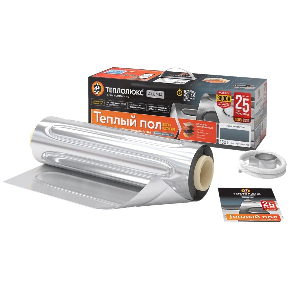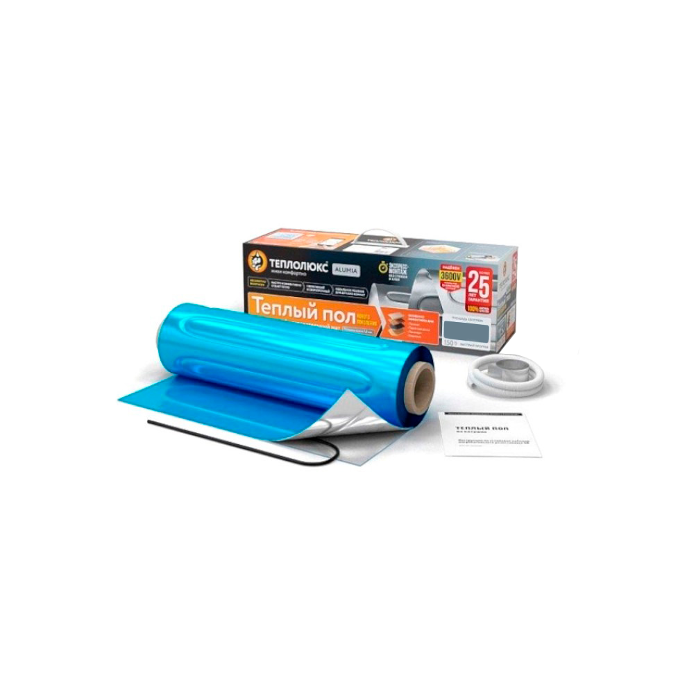 Тёплый пол предназначен для устройства комфортного подогрева пола без заливки строительными смесями и устанавливается непосредственно под напольное покрытие, гарантируя тепло и комфорт в помещении любого типа. В нём удачно сочетаются достоинства плёночных и кабельных тёплых полов, поэтому интерес покупателей к нему неизменно высок. Он представляет собой нагревательный мат шириной 0,5 м на основе двухжильного греющего кабеля, зафиксированного на фольге. Диаметр кабеля в разных модификациях тёплого пола варьируется от 0,9 до 1,8 мм, поэтому каждый покупатель может сделать выбор с учётом конкретных условий эксплуатации системы. Тёплый пол укладывается под паркетную доску, ламинат, ковролин или линолеум. Укладка может выполняться в помещениях разного назначения — на кухнях, в коридорах, санузлах, жилых и других комнатах. Пол укладывается по сухой технологии при минимальных затратах времени и усилий. Высота пола при этом не увеличивается, поэтому его можно использовать даже в помещениях с низкими потолками. На этапе эксплуатации системы тепло от греющего кабеля равномерно распределяется по алюминиевой основе. Благодаря этому обеспечивается высокая эффективность тёплого пола. При использовании предлагаемой системы из воздуха не выжигается кислород, в него не выделяются какие-либо вредные вещества. Все соединения пола изготавливаются в заводских условиях, а готовые нагревательные маты подвергаются строгому контролю качества. Компания-производитель даёт на предлагаемый тёплый пол 12-летнюю гарантию.