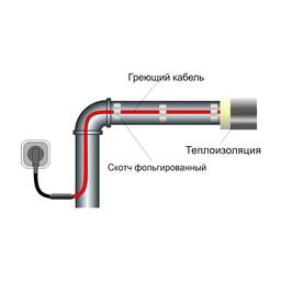 Комплект предназначен для обогрева водопровода и скважин диаметром 15, 20, 25, 32 с установкой поверх трубы. Выделение тепла происходит в полупроводящей матрице, сопротивление которой зависит от температуры поверхности, это обеспечивает эффект саморегулирования. При понижении температуры окружающей среды сопротивление матрицы меняется, тепловыделение кабеля увеличивается, и наоборот. Электропитание осуществляется от сети напряжением 220–240 В и подводится с одного конца. В конце участка обогрева установлена концевая муфта.