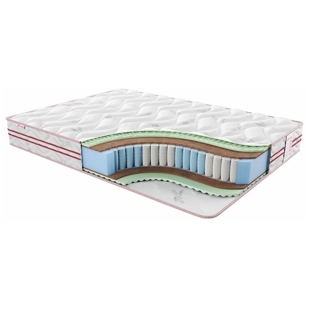 У матраса Sante Dual fame умеренно жесткие сторона, образованные сочетанием RelaxFoam и латексированного волокна кокоса. В центре — блок с 512 независимыми пружинами на спальное место увеличенной высоты. Общая высота модели — 26 кг, а максимально допустимый вес пользователя составляет 125 кг. Наполнители матраса гигиеничные, в них не будут скапливаться пыль и влага. Кокос отвечает за равномерное распределение веса, он усиливает ортопедическую поддержку позвоночника. Пена обеспечивает комфортность отдыха, она анатомичная и упругая. Чехол матраса обработан составом на основе алоэ вера. Ткань прочная, дарит приятные тактильные ощущения, заботится о чистоте постели благодаря антибактериальной пропитке.