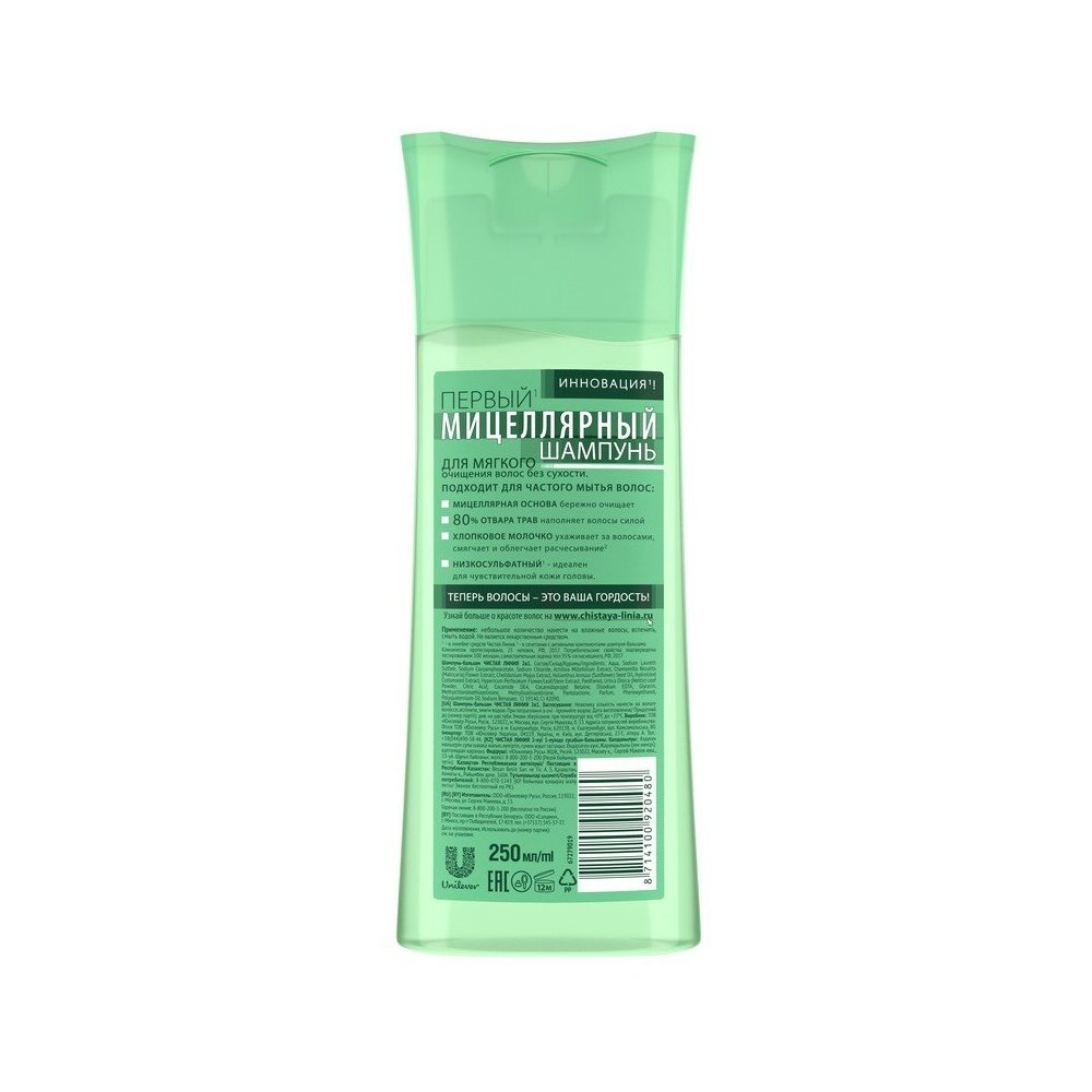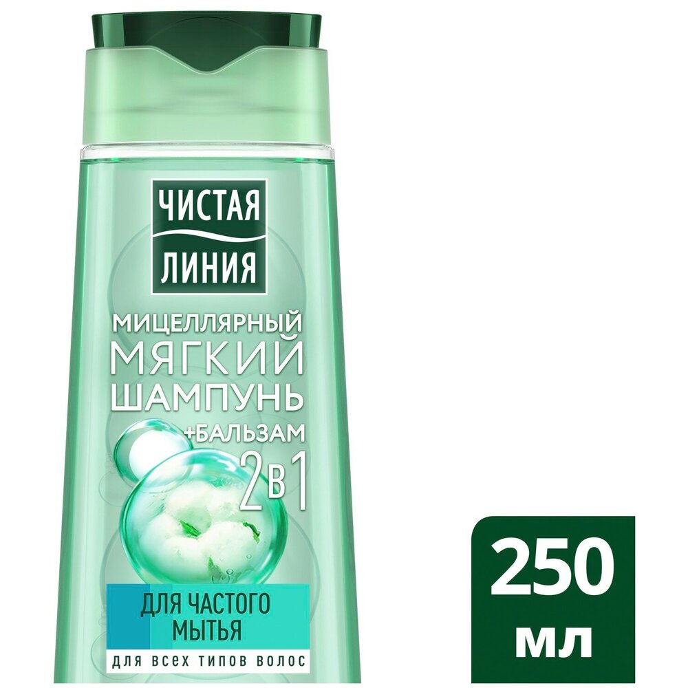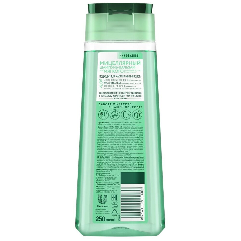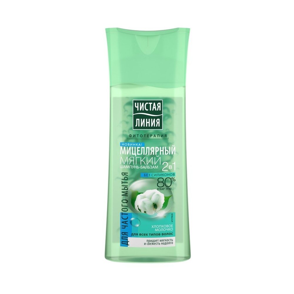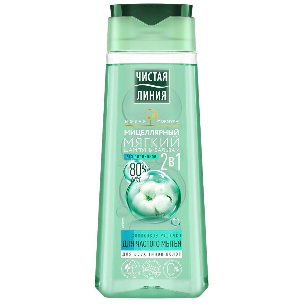 Чистая линия шампунь-бальзам 2в1 Мицеллярный Мягкий Хлопковое молочко, 400 мл
