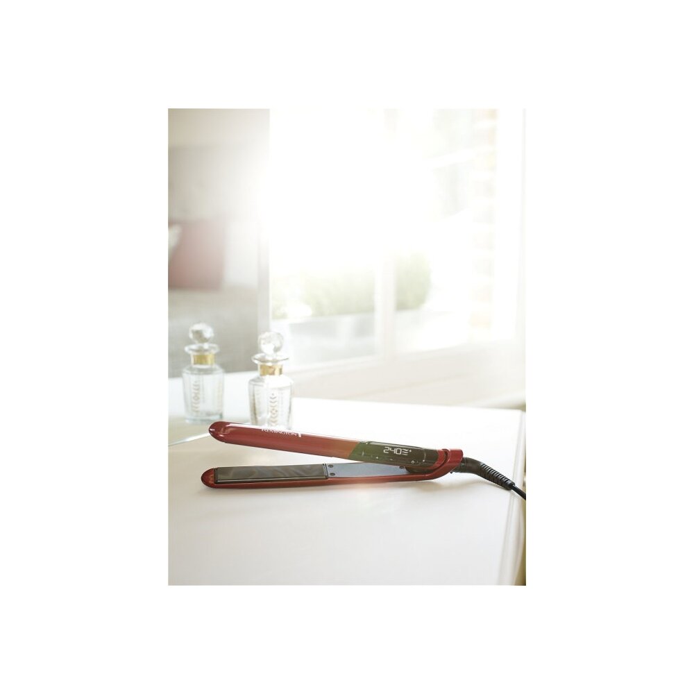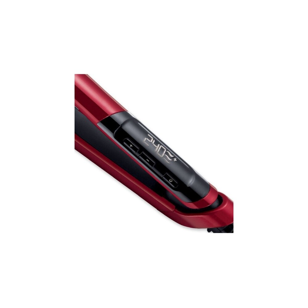 Пластины из усовершенствованной керамики с шёлком. Имеется контроль температуры от 150 до 235 °C с турбонагревом до 240 °C за 30 секунд. Информативный цифровой дисплей с индикацией оптимальной температуры по типу волос, функция автоматического запоминания температурных настроек при отключении от сети, блокировка кнопок нагрева. Защёлка-фиксатор пластин обеспечивает удобство хранения. Автоматическое отключение происходит через 1 час работы. Вращающийся шнур питания имеет длину 3 м. В комплекте — стильная термостойкая сумочка.