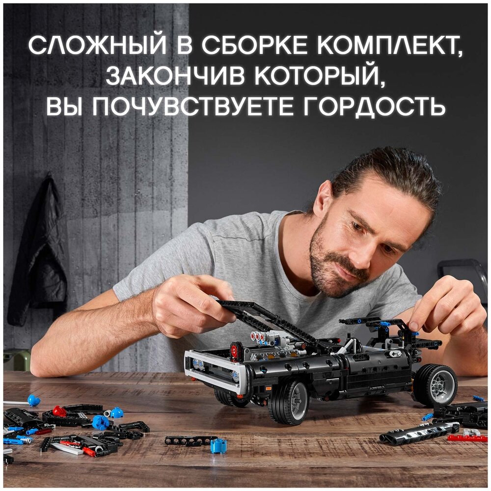 Набор «Dodge Charger Доминика Торетто» LEGO® Technic (42111) позволит поклонникам «Форсажа» испытать острые ощущения. Модель создана на основе легендарного автомобиля Dodge Charger R/T из 1970-х годов. В ее дизайне использовано множество аутентичных деталей. Под крышкой капота вы найдете модель знаменитого двигателя V8. Поклонникам наверняка придутся по душе движущиеся поршни, рычажная подвеска, система рулевого управления и воздуходувка. А для тех, кто хочет воссоздать дерзкие погони Доминика, в багаже припасен баллон с закисью азота. Этот автомобиль совсем как настоящий! Набор предназначен для поклонников LEGO® в возрасте от 10 лет. Им обязательно понравится строить свои собственные модели знаменитого автомобиля Доминика Торетто. А после того как Dodge Charger собран, становится еще веселее, ведь теперь можно воссоздавать классические сцены из «Форсажа» и устраивать адреналиновые гонки прямо у себя дома. Потрясающий конструктор для творческих игр. Во вселенной LEGO Technic вы найдете конструкторы продвинутого уровня, разработанные специально для фанатов LEGO, готовых оттачивать свои навыки сборки. <br />Набор LEGO Technic 42111 «Dodge Charger Доминика Торетто» – конструктор, созданный по мотивам «Форсажа». Дополнительные аксессуары сделают увлекательную игру с копией машины более реалистичной. <br />• Набор « Dodge Charger Доминика Торетто» LEGO® Technic (42111) — потрясающая модель классического автомобиля с мощным двигателем, которая позволит поклонникам воссоздать любимые сцены из «Форсажа». <br />• Модель состоит из 1077 элементов — настоящий вызов юным поклонникам LEGO и любителям игрушечных машин. Набор создан на основе оригинального автомобиля Dodge Charger R/T, выпущенного в 1970-х годах, и изобилует реалистичными деталями. <br />• Продуманные реалистичные детали модели позволяют воссоздать волнующую атмосферу уличных гонок благодаря движущимся поршням, подвеске, системе рулевого управления и воздуходуйке. Кроме того, автомобиль можно поставить на задние колеса, повторив знамений трюк Доминика. <br />• Ищете отличный подарок для ребенка старше 10 лет или увлеченного автомобилями взрослого? Этот набор — именно то, что вам нужно. Поклонники могут собрать модель автомобиля из «Форсажа», а затем воссоздать знаменитые сцены фильма с помощью ее потрясающих возможностей. <br />• Размер модели составляет 39 см в длину, 16 см в ширину и 11 см в высоту. Подходящий размер для увлекательных игр! А еще модель можно эффектно поставить на демонстрационный стенд на задние колеса. <br />• В набор входят печатные инструкции, которые помогут маленьким конструкторам собрать эту модель. <br />• Познакомьте детей с миром конструирования и игр с наборами LEGO® Technic. Благодаря крутому дизайну и реалистичным функциям дети будут еще долго увлеченно играть с этой моделью после завершения сборки. <br />• Все конструкторы LEGO® Technic отвечают высочайшим стандартам качества, а это значит, что детали всегда легко соединяются. <br />• Специалисты LEGO Group подвергают кубики и детали всевозможным испытаниям, чтобы убедиться в соответствии всех наборов LEGO® Technic самым строгим международным стандартам безопасности и качества.