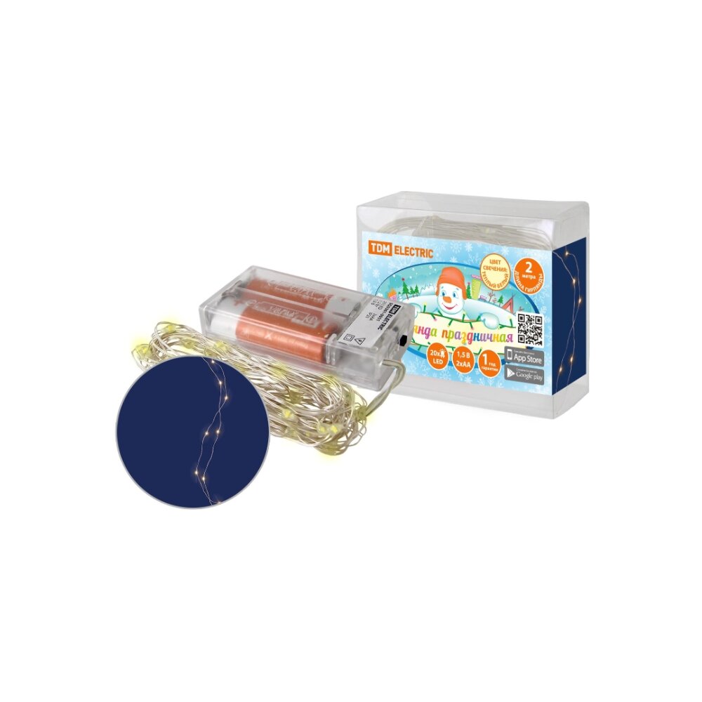 Гирлянда светодиодная "Роса20" 20LED, 2м, 3000К, 2хАА, TDM