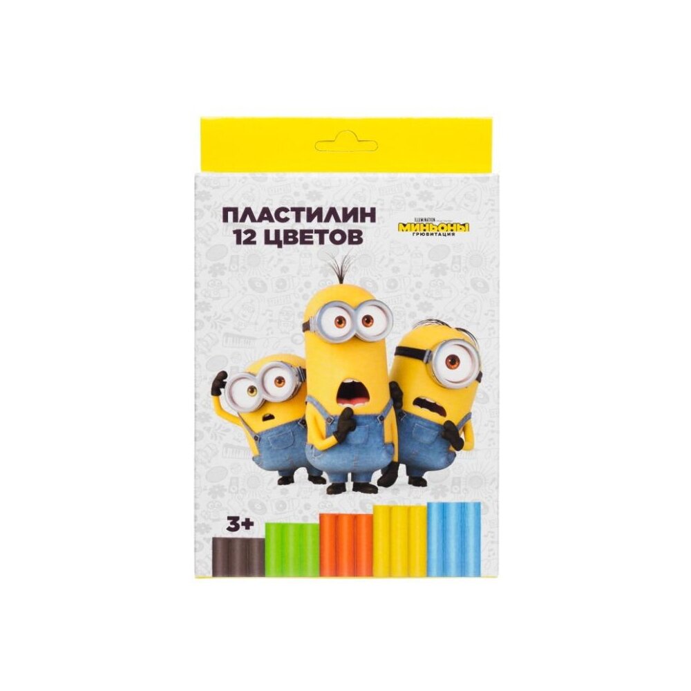 Пластилин 12 цветов "Миньоны", 240 гр, стека пластиковая, картонная упаковка с европодвесом