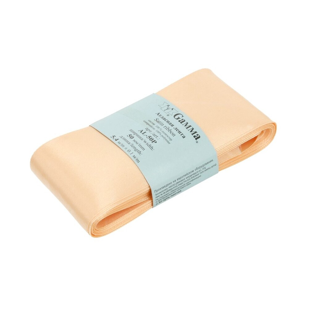 Лента атласная Gamma 50 мм, 5,4 м, № 006, цвет светло-персиковый (AL-50P)
