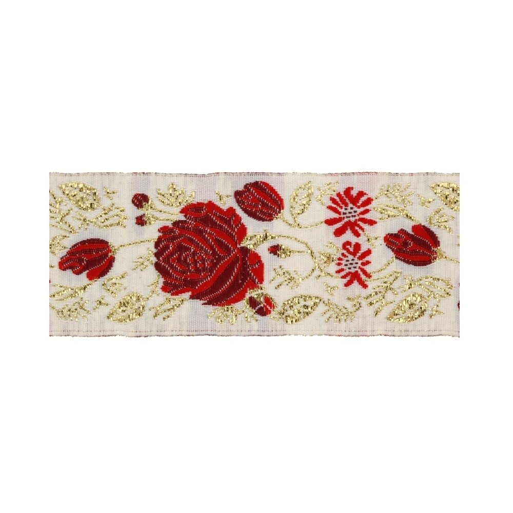 Лента жаккардовая Gamma 35 мм, 10 м, отделочная, цвет белый и красный (TRJ-34)