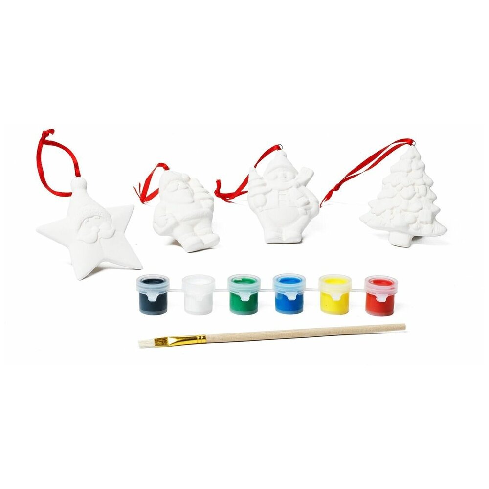 Процесс создания чего-то своими руками необычайно интересен и познавателен. В наборе 4 керамические Фигурки для раскрашивания:Д.Мороз, Снеговик, елка, звезда, разноцветные краски, кисточка. Попробуйте свои силы, и Вы получите чудесное украшение на новогоднюю ёлку или фигурку-подарок.