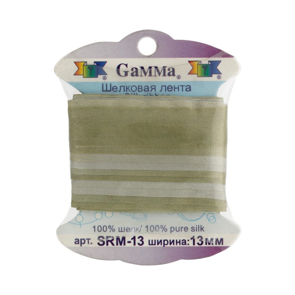 Тесьма декоративная Gamma шелковая, 13 мм, 9,1 +/- 0,5 м, цвет серо-зеленый и зеленый (SRM-13)