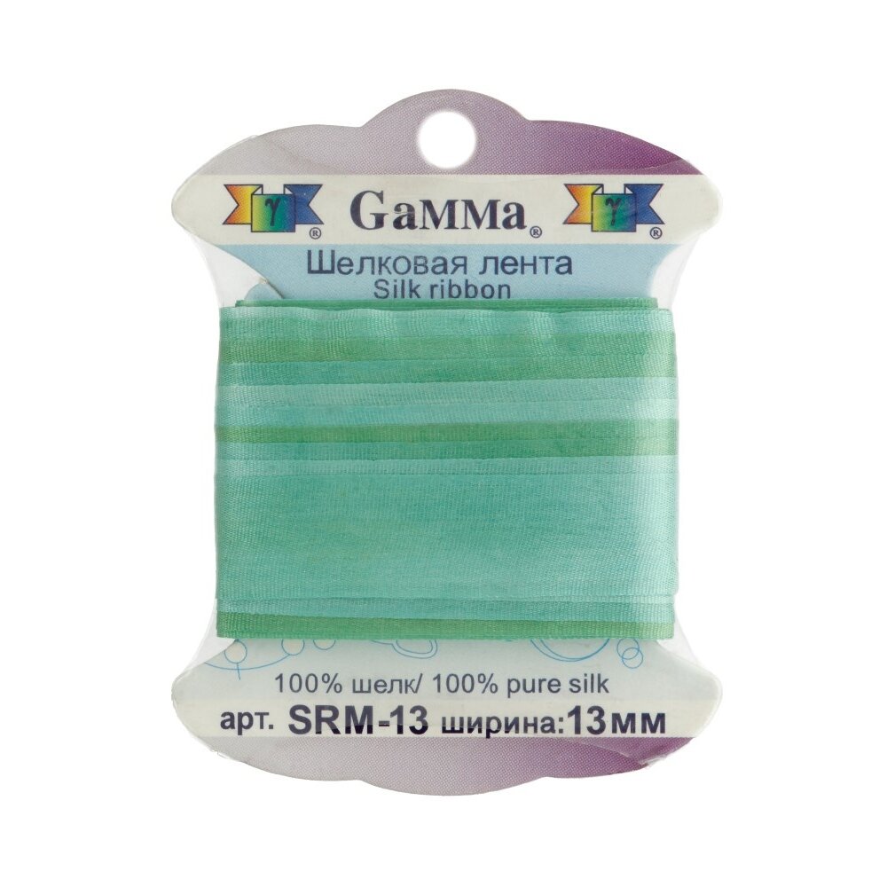 Тесьма декоративная Gamma шелковая, 13 мм, 9,1 +/- 0,5 м, M020, цвет светло-зеленый и зеленый (SRM-13)