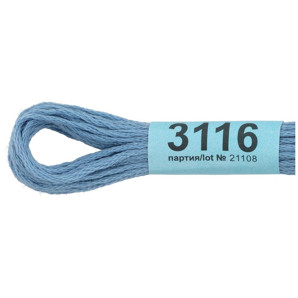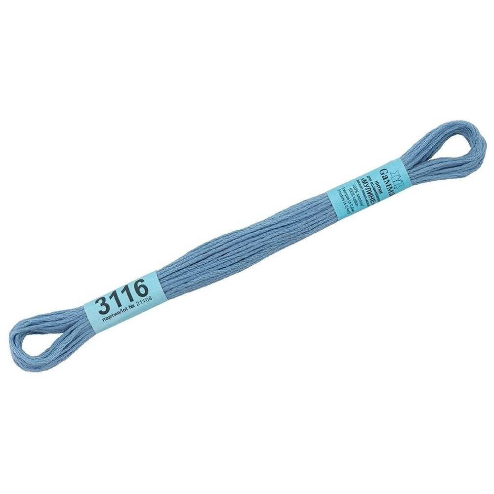 Нитки для вышивания Gamma мулине, 100% хлопок, 24*8 м, №3116, голубые
