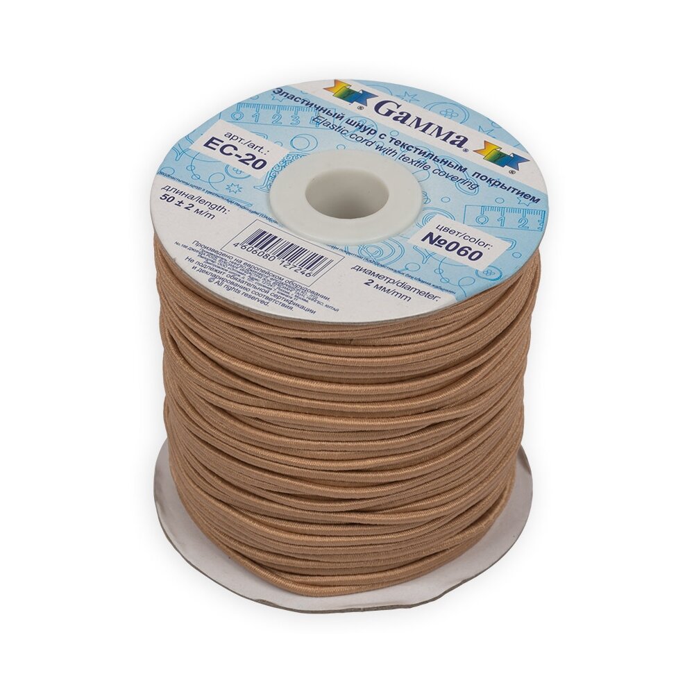 Шнур Gamma 2 мм, эластичный, 50 м+-0,5 м, №060, бежевый (EC-20)
