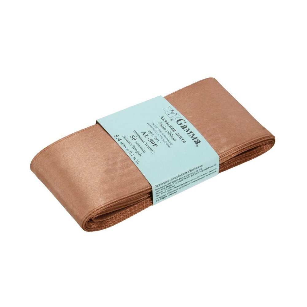 Лента атласная Gamma 50 мм, 5,4 м, № 031, цвет темно-коричневый (AL-50P)