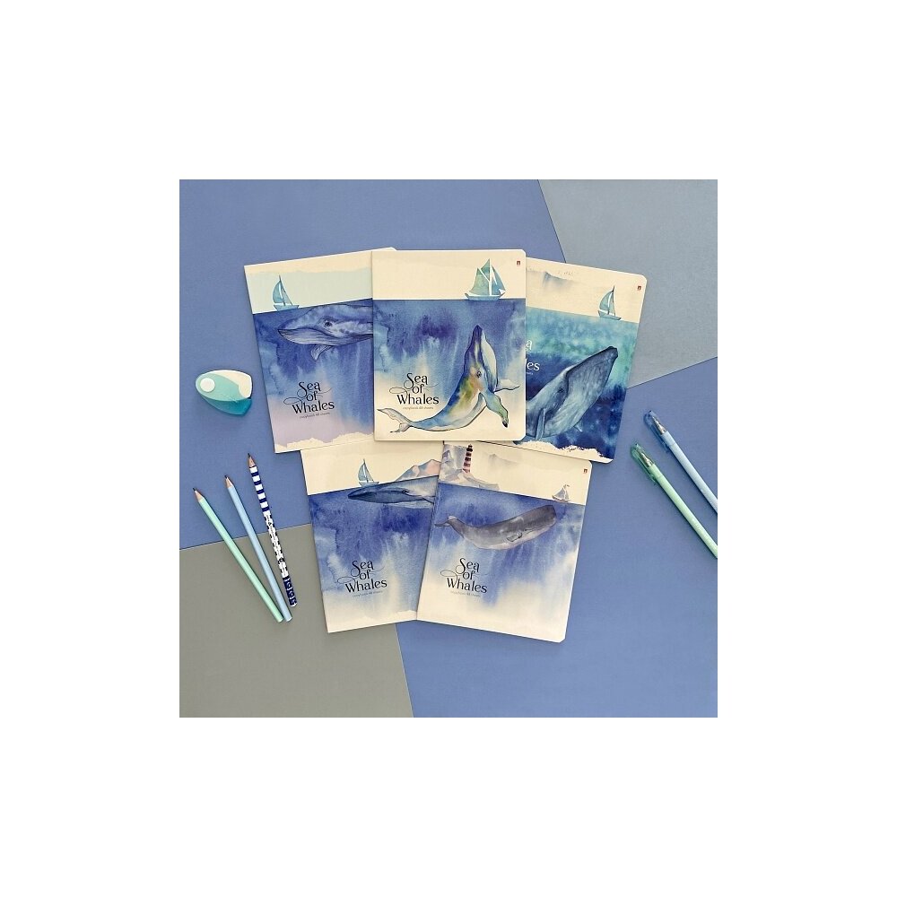 Тетради 48 листов "киты.акварель" 5 видов. Набор 5 шт. Цена за 5 штук.