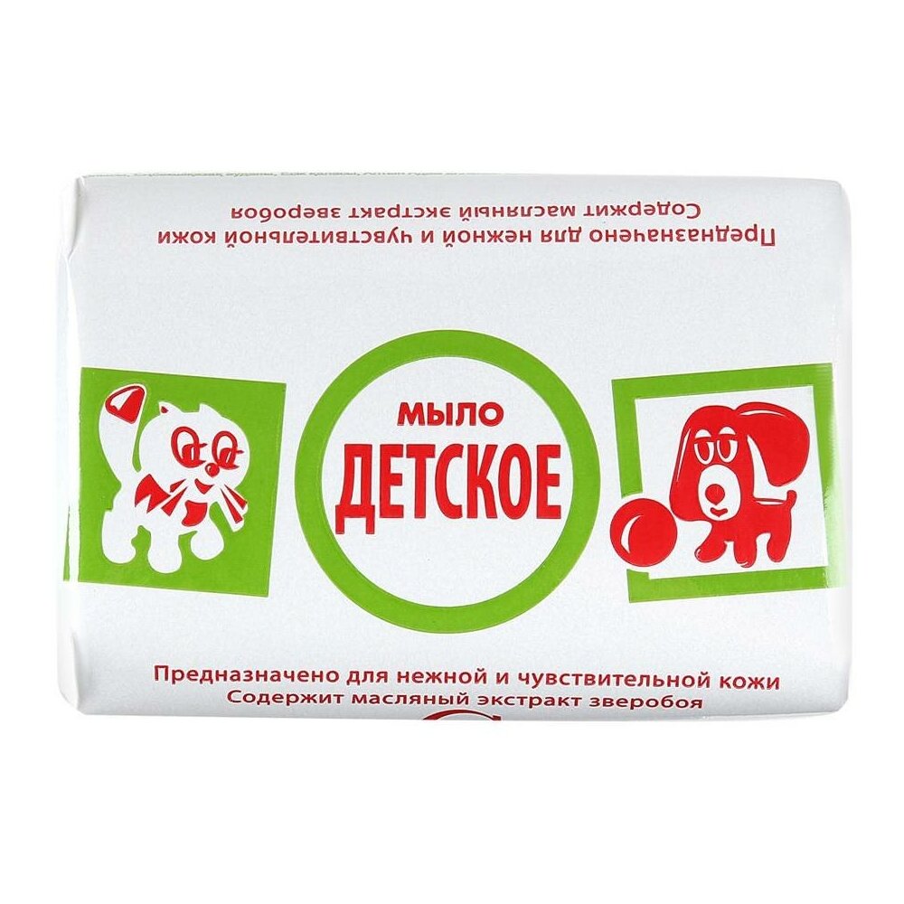 Туалетное мыло «Детское» вырабатывается из высококачественного жирового сырья и растительных масел. Натуральный глицерин и масляный экстракт зверобоя, входящие в состав туалетного мыла, способствуют смягчению кожи и сохранению её увлажнённости. Мыло обладает высокой моющей и пенообразующей способностью, прекрасно очищает кожу и улучшает её гигиеническое состояние. Предназначено для нежной и чувствительной кожи детей и взрослых.