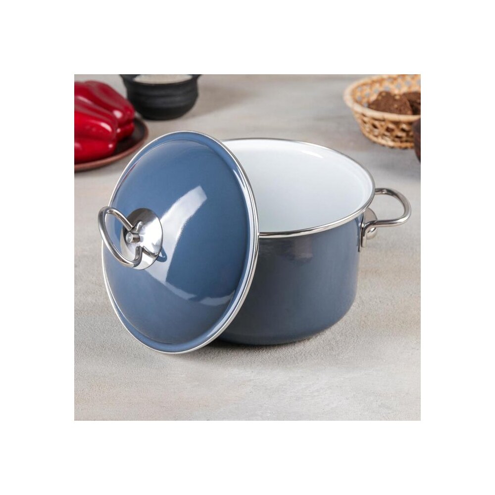Кастрюля СтальЭмаль цилиндрическая, Grey, 2 л, серая
