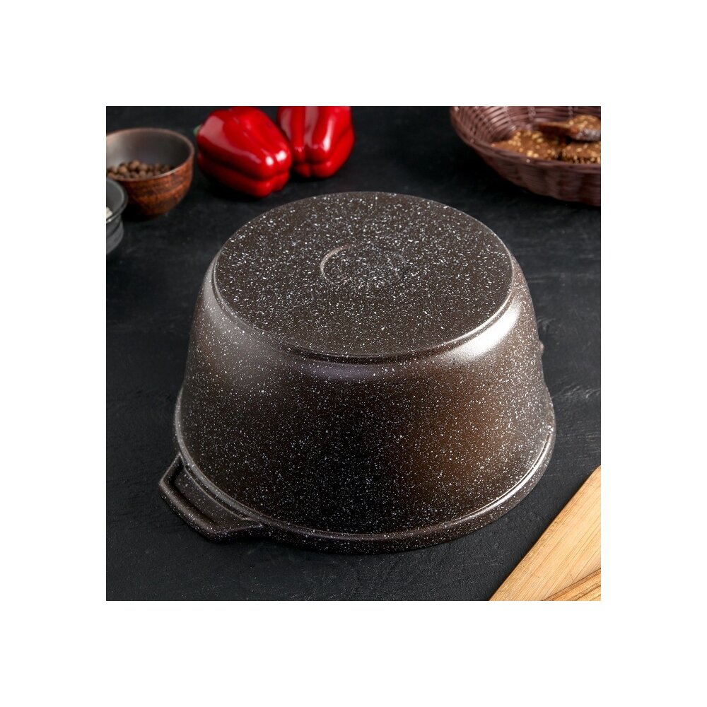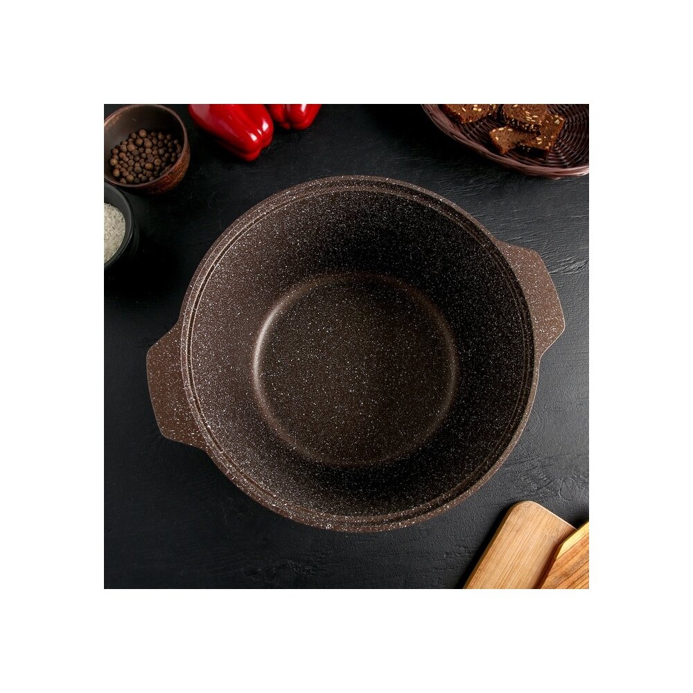 Кастрюля-жаровня Kukmara 5 л, стеклянная крышка, антипригарное покрытие, кофейный мрамор