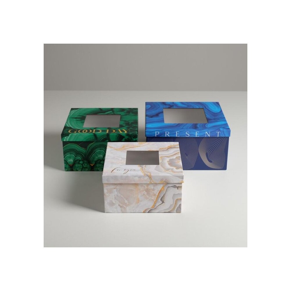 Набор коробок Дарите Счастье с PVC окном, 3 в 1, "Текстуры", 18*18*10-22*22*12 см
