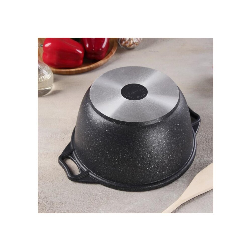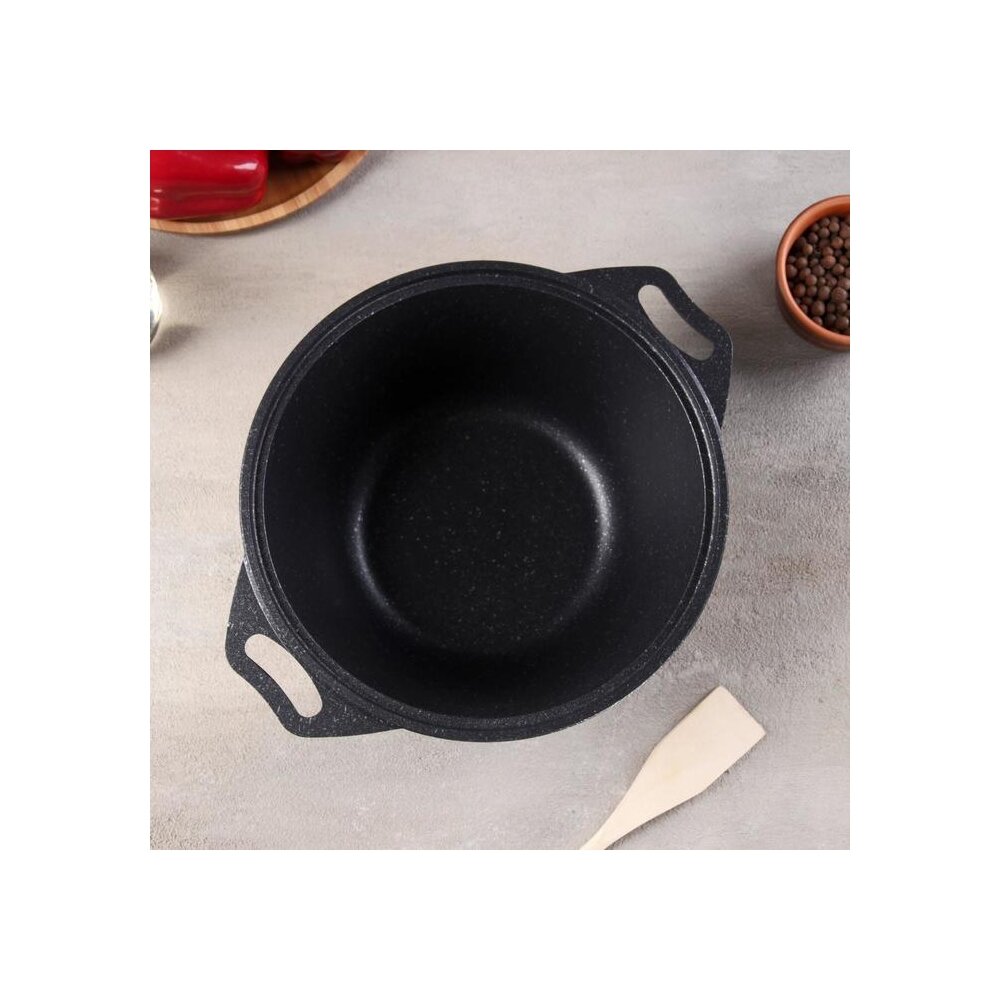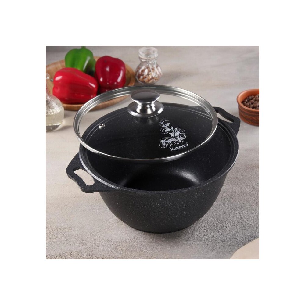 Кастрюля Kukmara 3 л, стеклянная крышка, антипригарное покрытие, темный мрамор