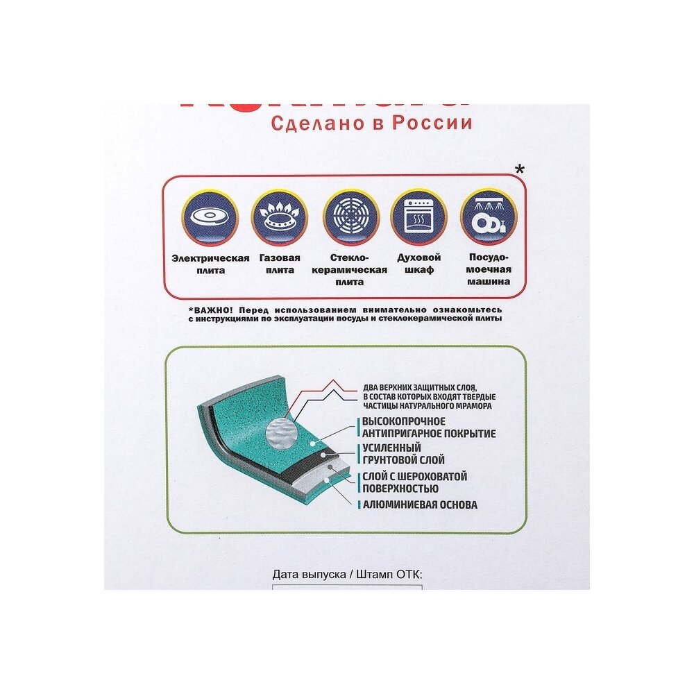 Кастрюля Kukmara сделана из литого алюминия. Имеет инновационное антипригарное мраморное покрытие на водной основе и усилено сверхтвёрдыми частицами минералов. Значительная толщина стенок и дна исключает деформацию корпуса кастрюли, гарантирует её долговечность, обеспечивает необходимую прочность. Высокопрочное антипригарное мраморное покрытие на водной основе, усиленное сверхтвёрдыми частицами минералов. Экологически безопасное покрытие без содержания PFOA (перфтороктановая кислота). Идеальное распределение тепла по всей поверхности посуды, длительное сохранение тепла. Возможность использования минимального количества жира. Антипригарное мраморное покрытие наносится методом напыления, который гарантирует исключительную стойкость при эксплуатации.