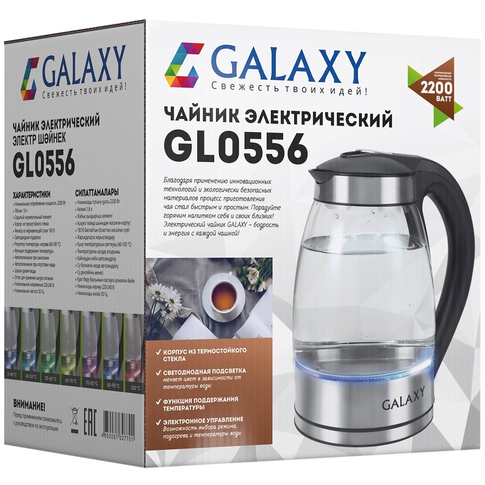 Чайник GALAXY GL0556, прозрачный/серебристый/черный
