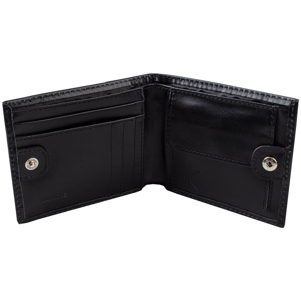 Портмоне мужское среднего размера из натуральной кожи. Внутри 2 отделения для купюр, дополнительный карман на молнии, обьемный карман для мелочи, который закрывается клапаном с потайной кнопкой , 7 карманов для кредитных карт.