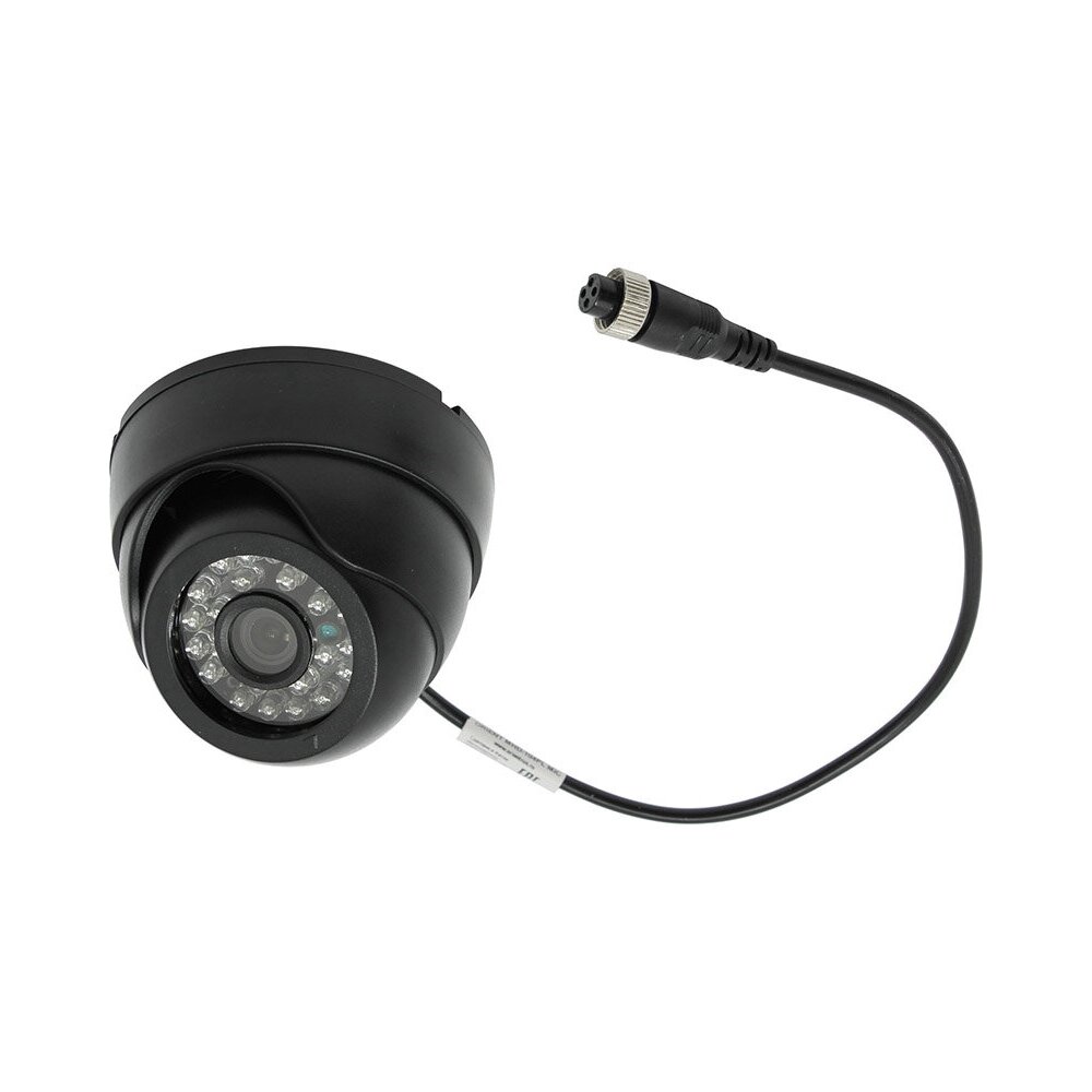 Артикул № 734511 Купольная аналоговая AHD камера для автомобильных регистраторов с разъёмами AVIA, предназначена для установки в салоне транспортного средства. Сенсор 1/4" CMOS Silicon Optronics H42. Максимальное разрешение съемки 1 МП 1280x720 (HD). Объектив с фиксированным фокусом, фокусное расстояние 2.8 мм. Минимальная освещённость 0.01 lux. Дальность инфракрасной подсветки до 10 метров. Может эксплуатироваться при температуре от -40°C до +60°C и влажности 0%-95%. Напряжение питания 12В. Пластиковый корпус.