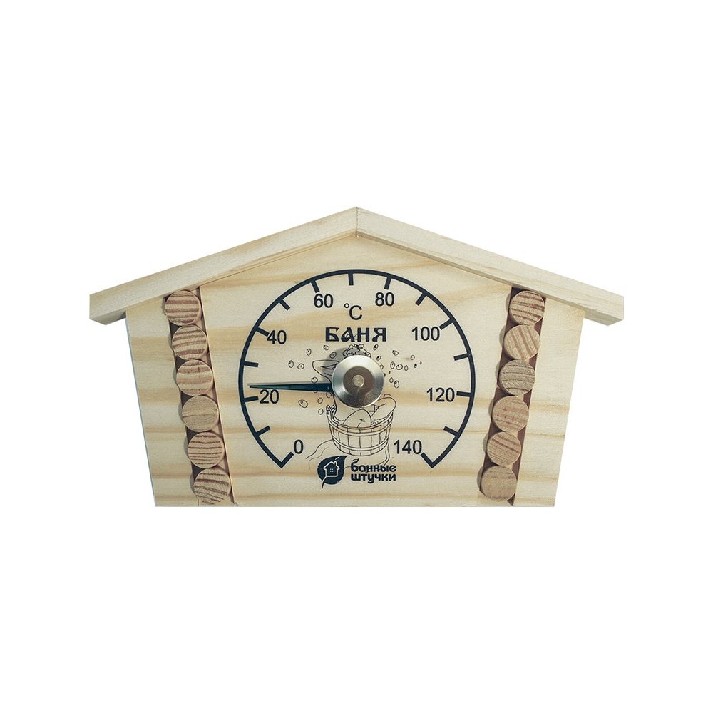 Артикул № 821656 При выборе термометра для парной стоит обратить внимание на изделие от российского производителя «Банные штучки». Стильный аксессуар имеет форму домика, для его изготовления используется натуральная древесина. Изделие сохраняет привлекательный внешний в условиях повышенной влажности и перепадов температуры. Механический циферблат показывает температуру в пределах от 0 до 140 ⁰С.